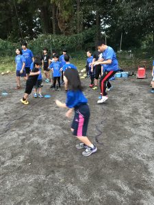 ・挨拶 ・縄跳び15秒×4 ・ストレッチ ・テニスボールキャッチ