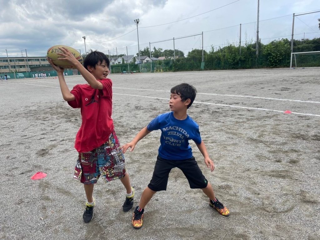 4年生以下:2人組パス、キャッチ、走りながらキャッチ&パス、10回パス回し、ゲーム