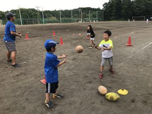 ・キャッチボール(ラグビーボール・バウンドボール) ・1on1 ・ゲーム3対3